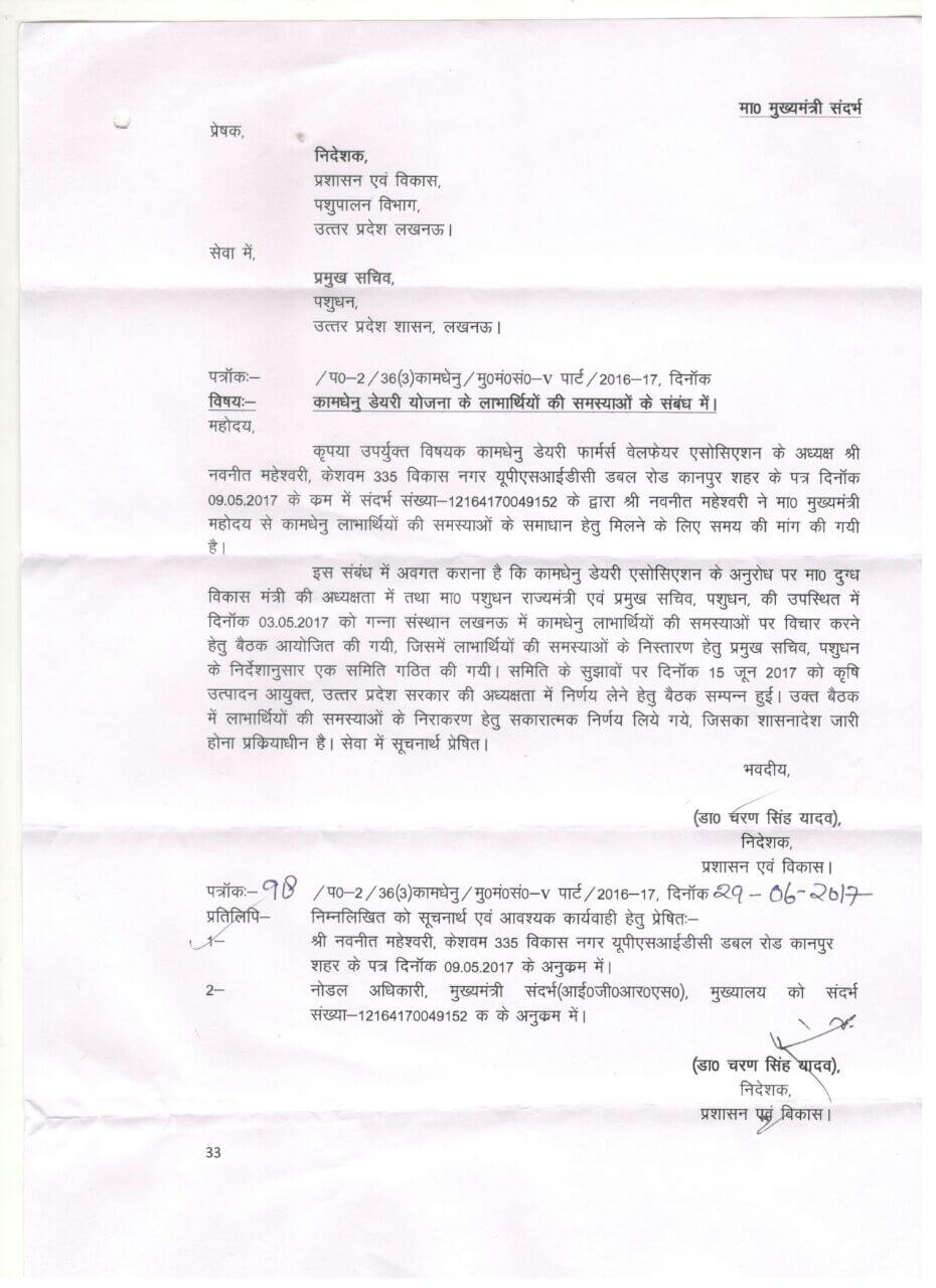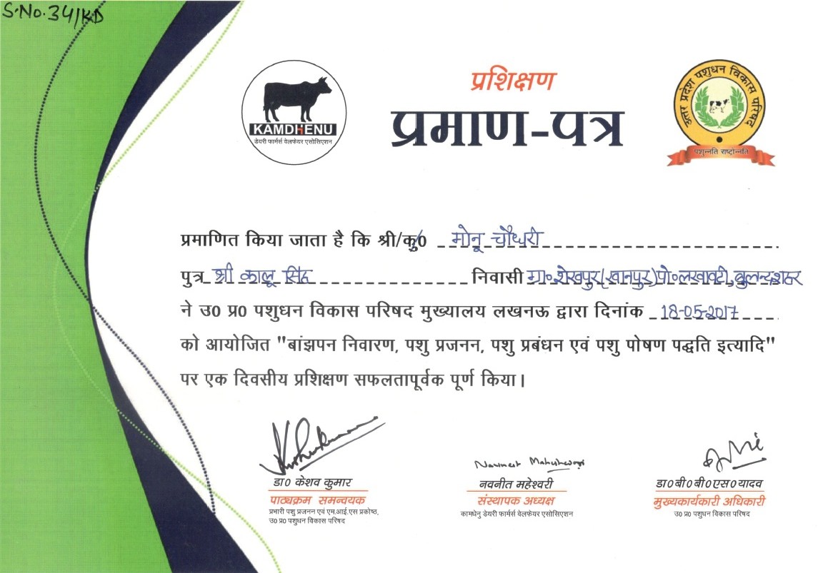 Those who have not collected the certificates of training conducted by the department and Kamdhenu Association from Lucknow Animal Husbandry Department, they can collect their certificates from the Kanpur office of Kamdhenu Association. Kamdhenu Dairy Farmers Welfare Association.