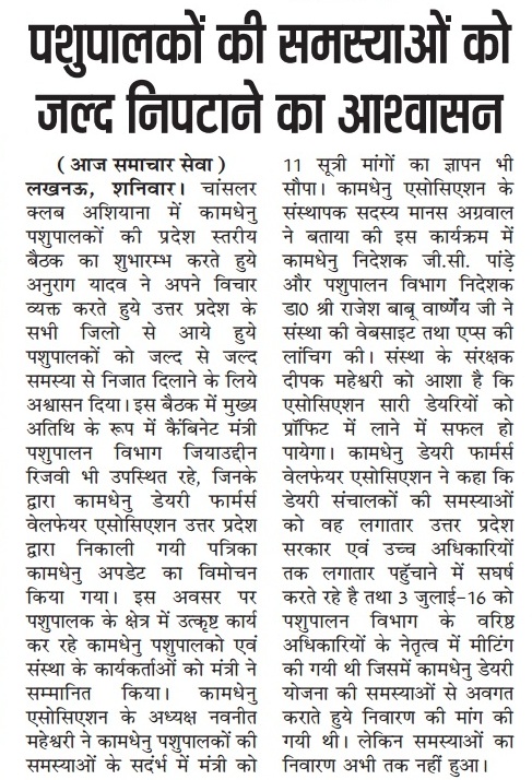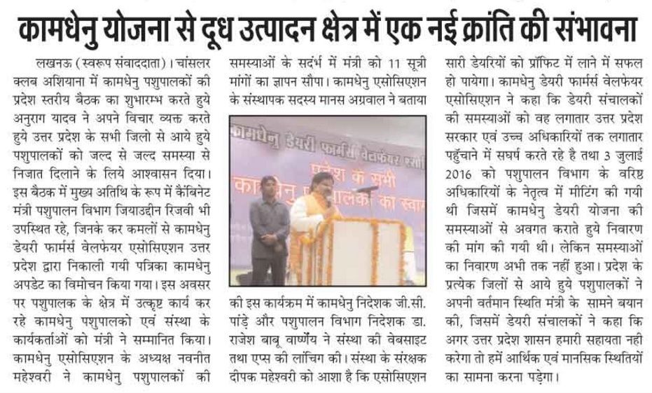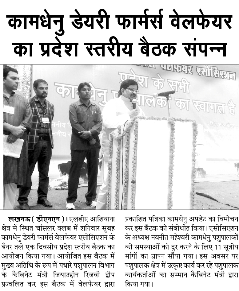 साथियों, उ.प्र. कामधेनु डेयरी फार्मर्स वैलफेयर एसोसिएशन की ३ जुलाई २०१६ को पहली बैठक लखनऊ मे आयोजित हुई