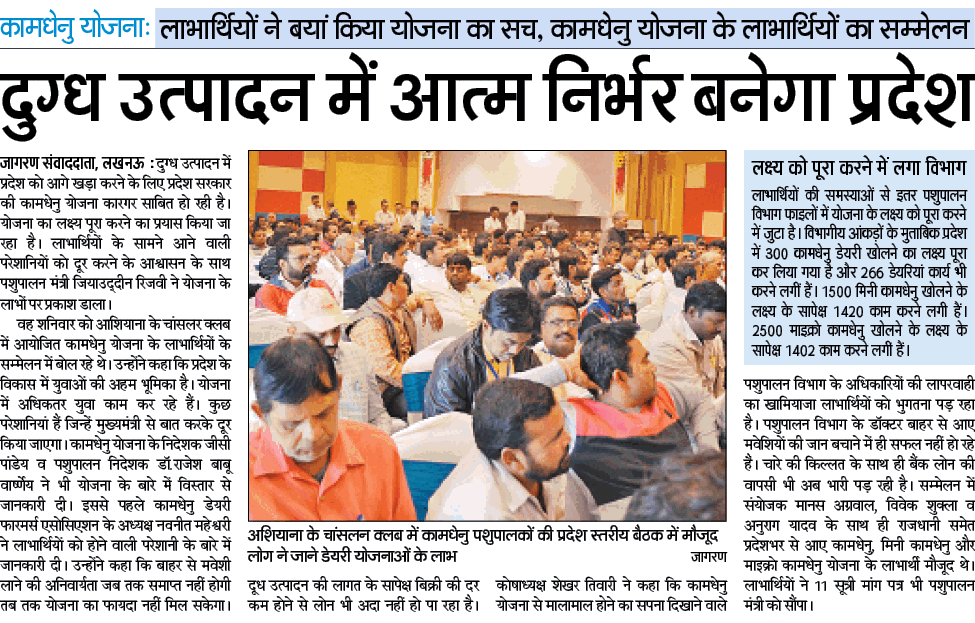 सिविल लाइन्स रायबरेली में आयोजित हुई । कामधेनु डेयरी फार्मर्स वेलफेयर एसोसिएशन उ०प्र० के तत्वाधान में ही